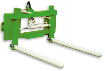 Für Heck- und Frontanbau für alle gängigen Ballen; stufenlose hydraulische Verstellung der Tragarme mittels doppeltwirkendem Hydraulikzylinder und aufgesetztem Sperrblock, Tragrohre sind auf geschmiedeten, hochfesten Zinken drehbar gelagert, mittels Schnellverschluss fixiert und abnehmbar; wahlweiser Einsatz mit drehbar gelagerten Tragrohren bzw. geschmiedeten Stahlzinken serienmäßig.