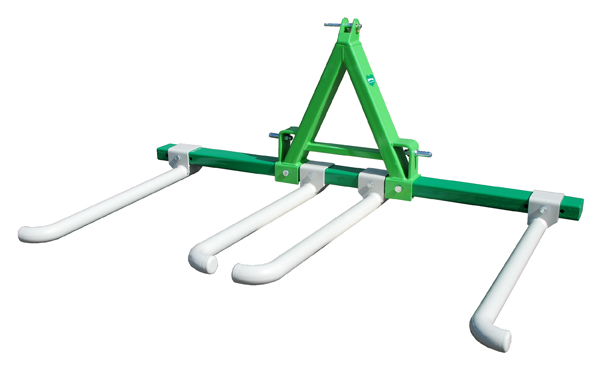 Hochfeste, stufig verstellbare Transportgabel, geeignet für den Transport von 2 Rundfutterballen der Größen 110 - 145 cm; Traktoranbau Kat. II Mit geringstem Zeitaufwand ist die DUO Pack 140 umrüstbar für den Transport von 1 Rundballen.
